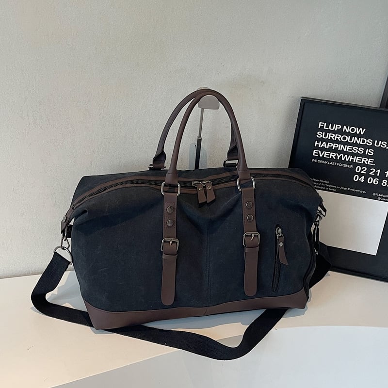 旅行や出張など多くの荷物が必要なシーンにぴったりの、大容量キャンバスボストンバッグ。帆布素材を使用しており、軽量でありながら丈夫さも兼ね備えた設計。手持ち・肩掛け・斜め掛けと3WAYで使用できる実用性の高さも魅力です。