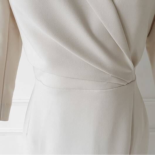 洗練された大人の雰囲気で、品格と女性らしさを両立させた上質なドレススタイル。