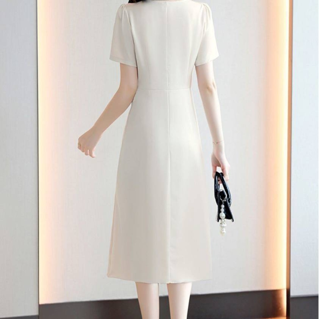 商品名:Vネック ワンピース レディース 上品 ミディ丈 ドレープデザイン フレアワンピース