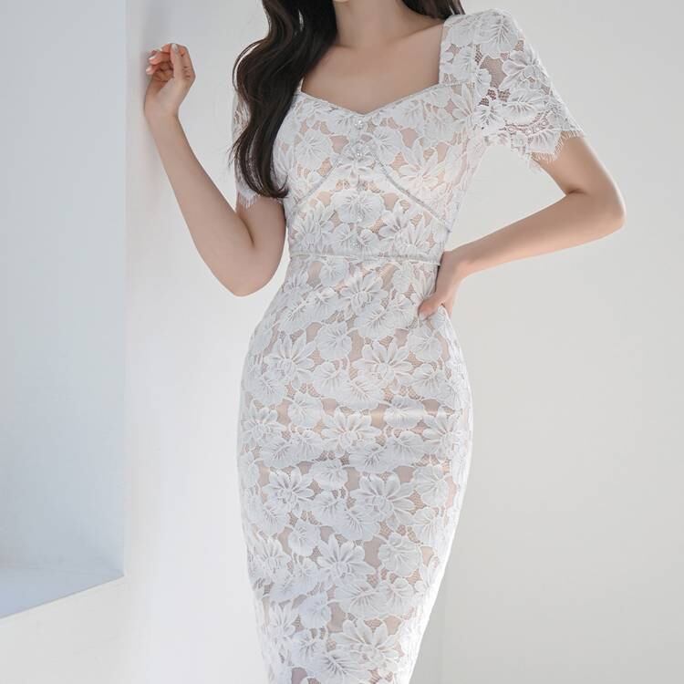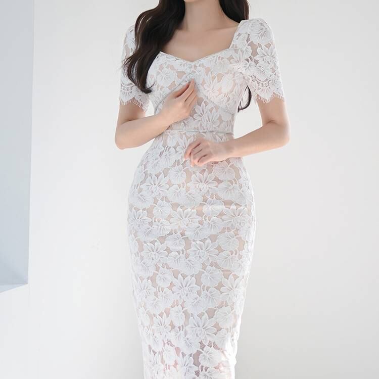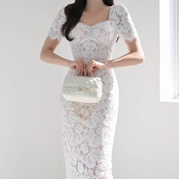レース ワンピース ドレス タイトワンピ ホワイト きれいめ 清楚 エレガント 大人 上品 パーティー お呼ばれ 結婚式 二次会 デート 20代 30代 40代 春 夏 秋 冬 韓国風 フォーマル レディース ロング丈 タイトシルエット 美脚効果 スリム見え 体型カバー C-OSS0258