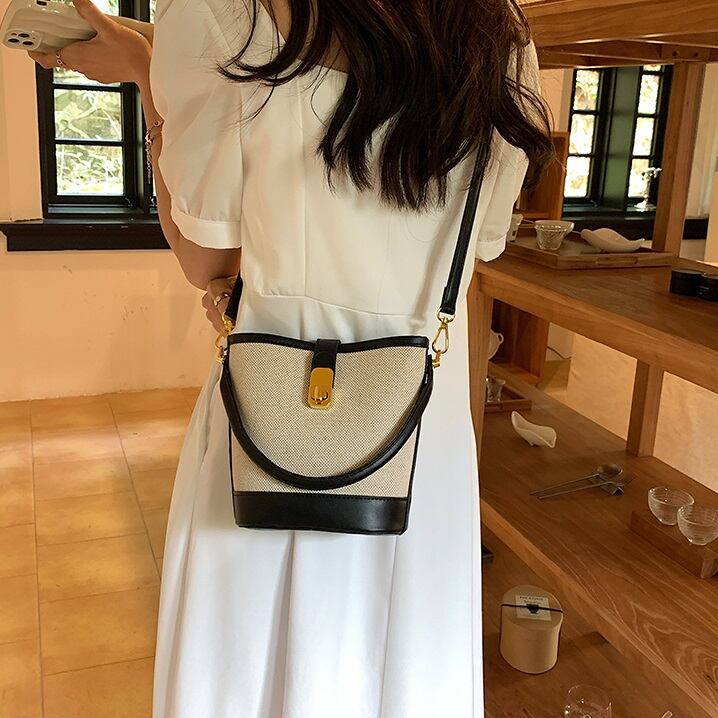 バケツ型デザイン ショルダーバッグ。