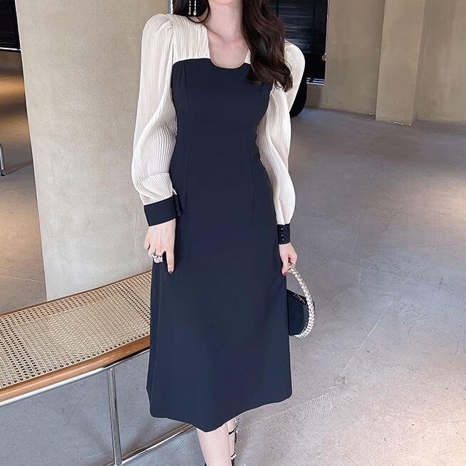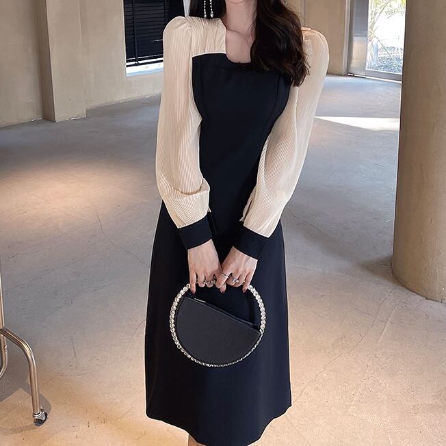 ワンピース レディース 春夏 秋冬 春 夏 秋 冬 長袖 黒ワンピース ドッキングワンピース ドレス ドレスワンピース Aラインワンピース ミディアムワンピース ロング ミモレ丈 ワンピース パフスリーブ ドッキング ひざ丈ワンピ Aライン ブラックワンピース ロングワンピース カジュアルワンピ ブラック キャバドレス キャバ嬢 ナイトドレス デート きれいめ 韓国 ファッション OL オフィスカジュアル 結婚式 パーティー お呼ばれ 10代 20代 30代 40代 C-OSS0080