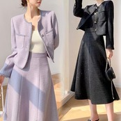 セットアップ レディース 春夏 秋冬 春 夏 秋 冬 黒 ジャケット Aラインスカート スーツ 上下セット 2点セット ツイードジャケット ツイードスーツ スーツスカート フレアスカート 長袖ジャケット ロングスカート 学校行事 スカート ボトムス セットアップ ロング スカートスーツ オフィス スカート マキシカート OL オフィスカジュアル 結婚式 パーティー 卒業式 入学式 卒園式 入園式 お呼ばれ ブラック ライトパープル 10代 20代 30代 40代 C-WAW1071