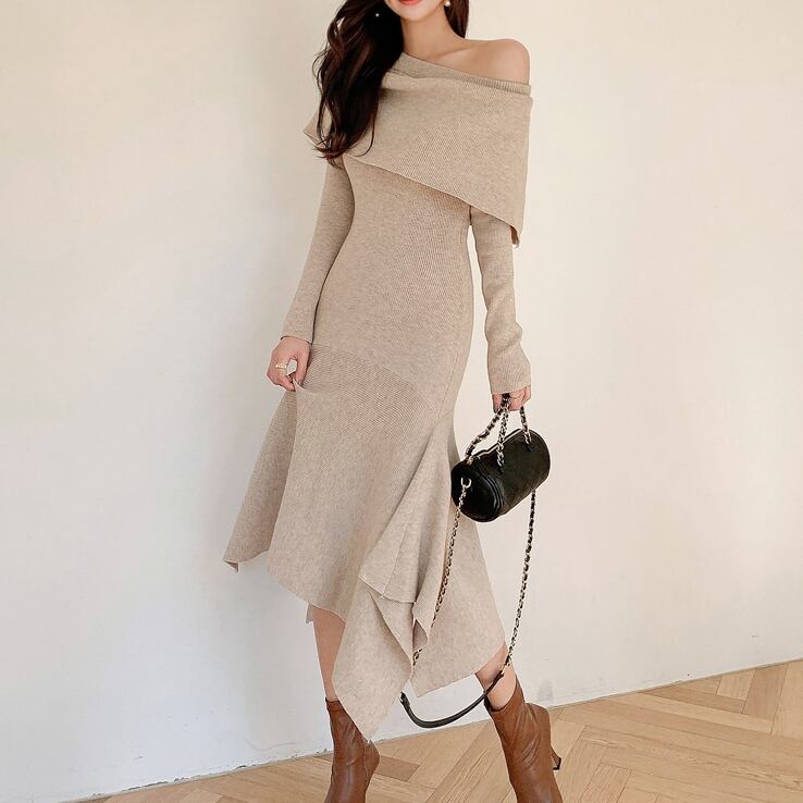 Aライン マーメイドライン アシンメトリーワンピース C-OAW1019