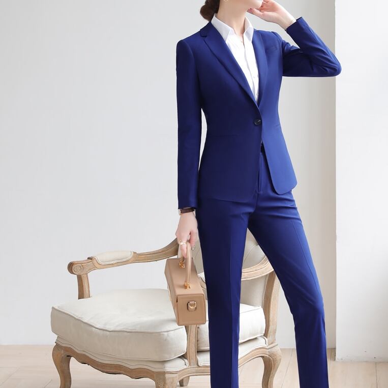 ジャケットとパンツのパンツスーツ。